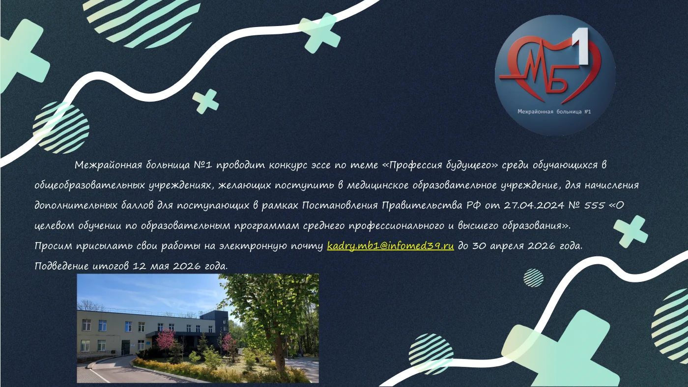 Поликлиническое отделение №1, г. Пионерский, ул. Шаманова, 6 E-mail: mb1@infomed39.ru Взрослая регистратура Детская регистратура Стоматология |
