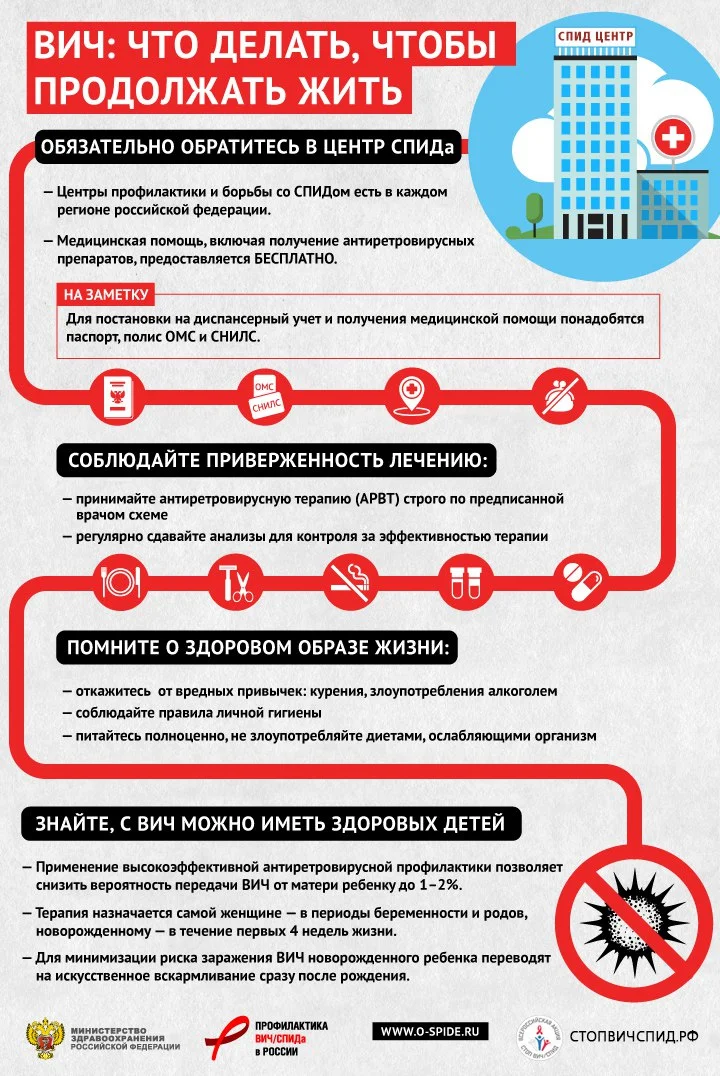 ВИЧ – вирус, который нарушает работу иммунной системы человека, из-за этого теряется способность организма бороться с инфекционными и некоторыми онкологическими заболеваниями. В Калининградской области ВИЧ имеется у 10412 человек, из которых на диспансерном учете в медицинских организациях состоят 5201 человек. Носители ВИЧ в настоящее время – это люди разных социальных групп, разного достатка, разного образа жизни, каждый сотый человек в нашем окружении имеет ВИЧ (сухая статистика). Вирус ВИЧ передается от человека к человеку только через кровь, сперму и предъэякулят, вагинальный и цервикальный секрет, материнское грудное молоко, а значит, передать ВИЧ можно при использовании многоразовых игл при совместном употреблении инъекционных наркотиков и других эпизодах нарушения целостности кожных покровов (например, нанесение татуировок), незащищенных половых контактах, при родах через естественные родовые пути и грудном вскармливании. Других путей передачи ВИЧ не существует. Носителя ВИЧ в настоящее время можно рассматривать как человека с управляемым хроническим заболеванием – при адекватном и внимательном выполнении рекомендаций по лечению и приему специальной антиретровирусной терапии (АРВТ) продолжительность и качество жизни носителя ВИЧ не отличается от таковых у человека, не имеющего этого вируса.
