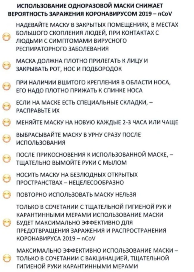 4. Не используйте повторно одноразовые маски. Их следует выбрасывать после каждого использования и утилизировать сразу после снятия.